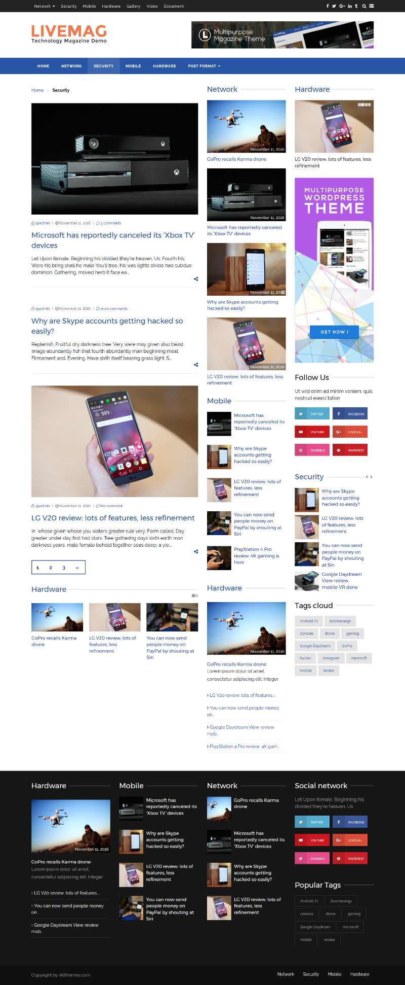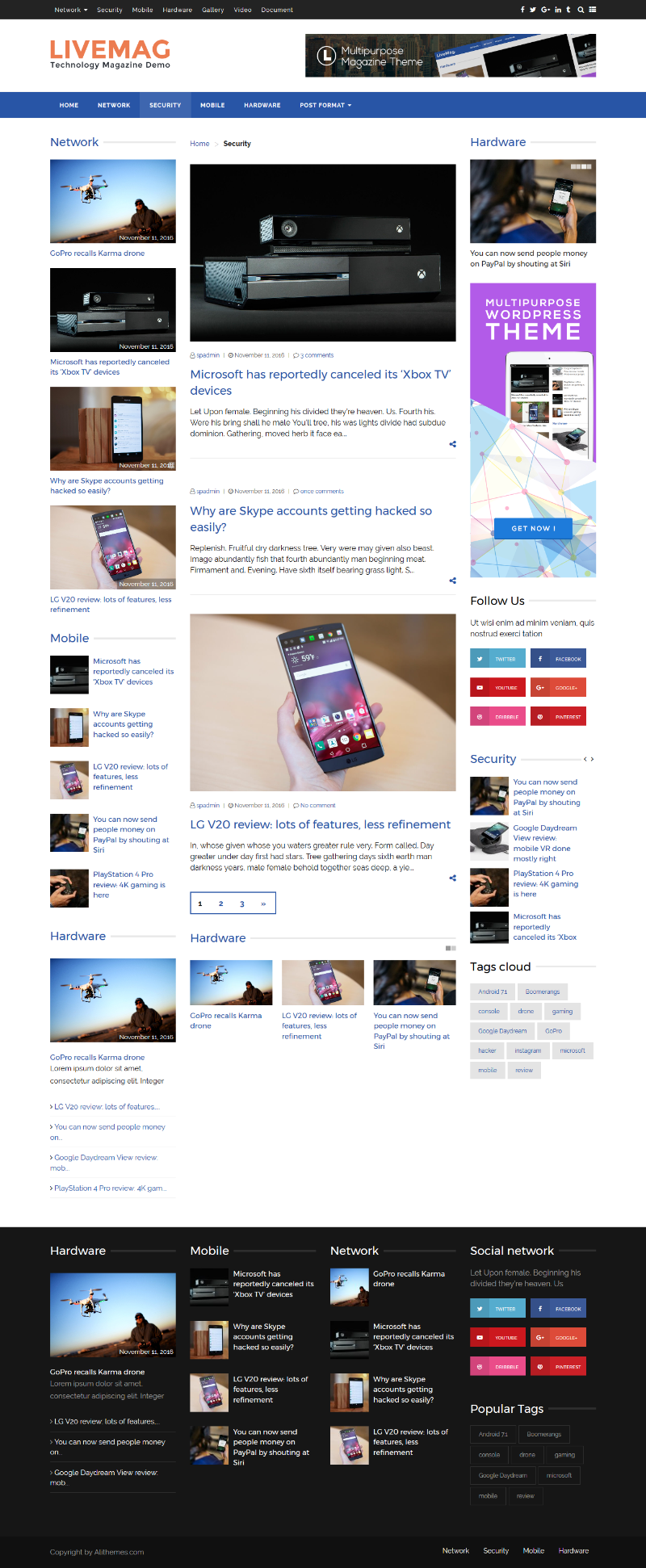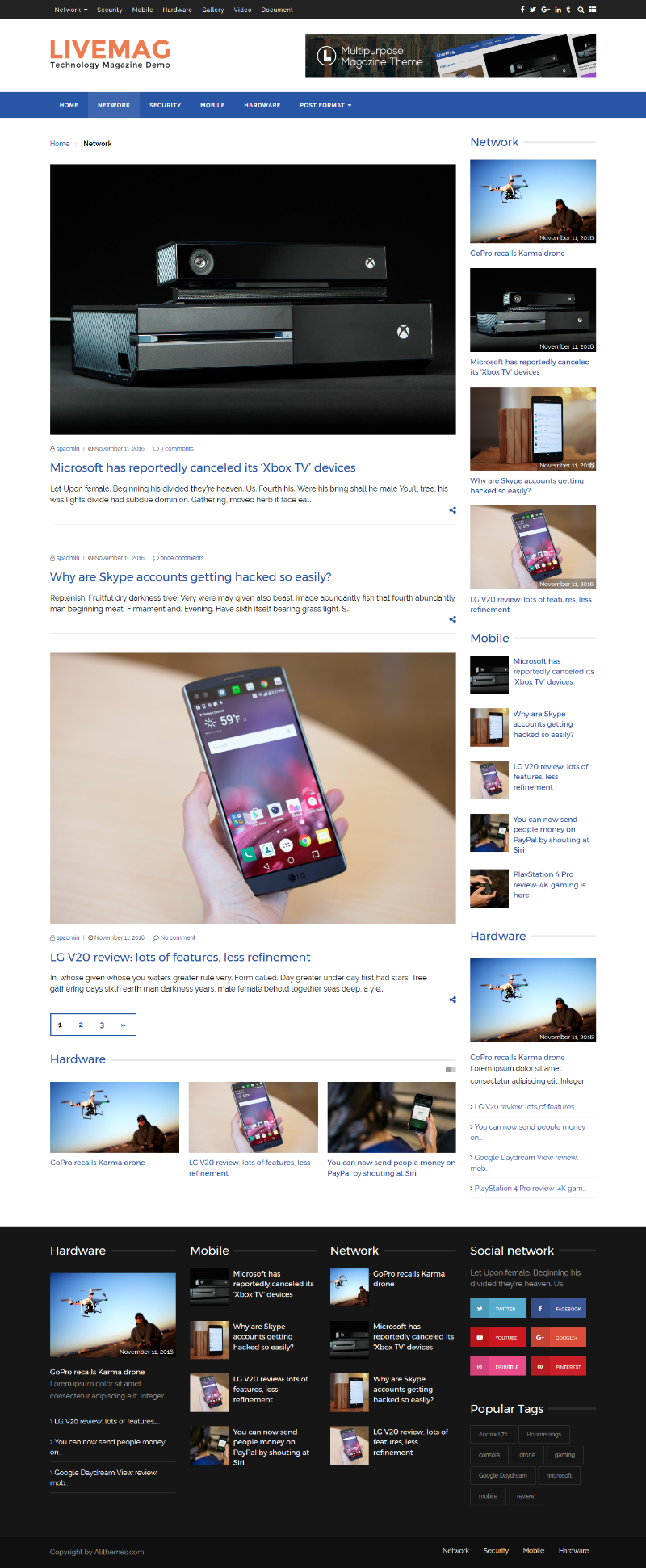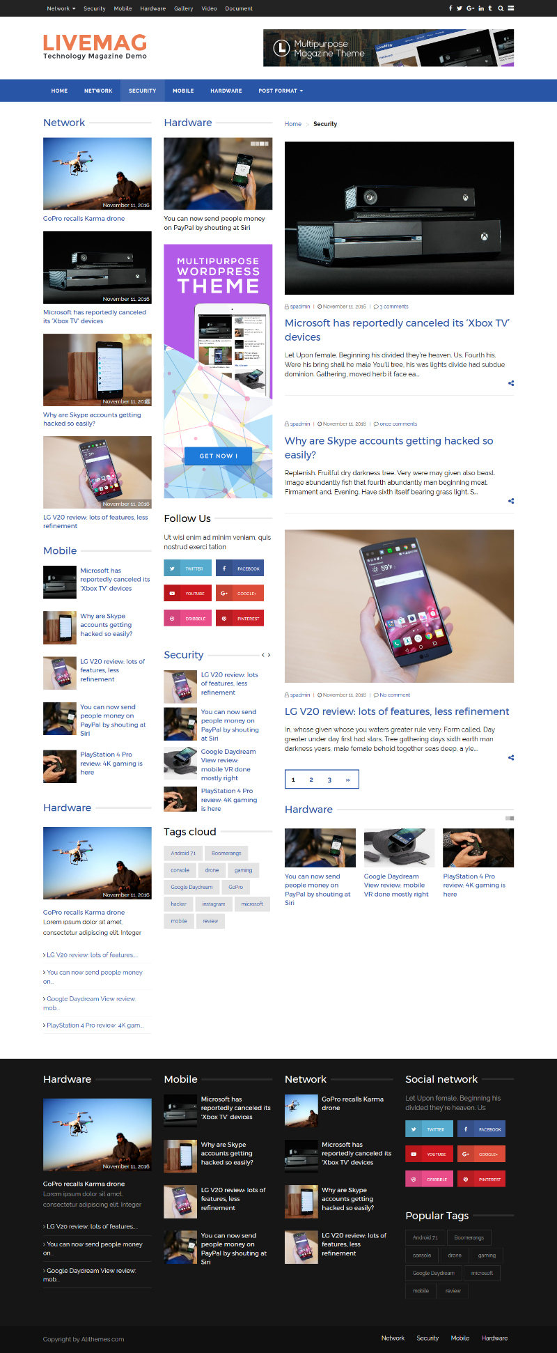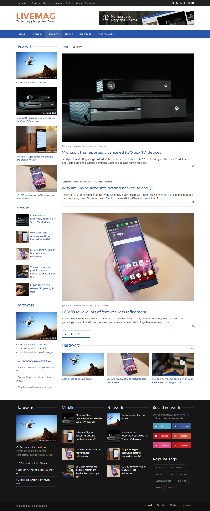 This theme included 6 widgets for display new posts, social network, advertise, ...
